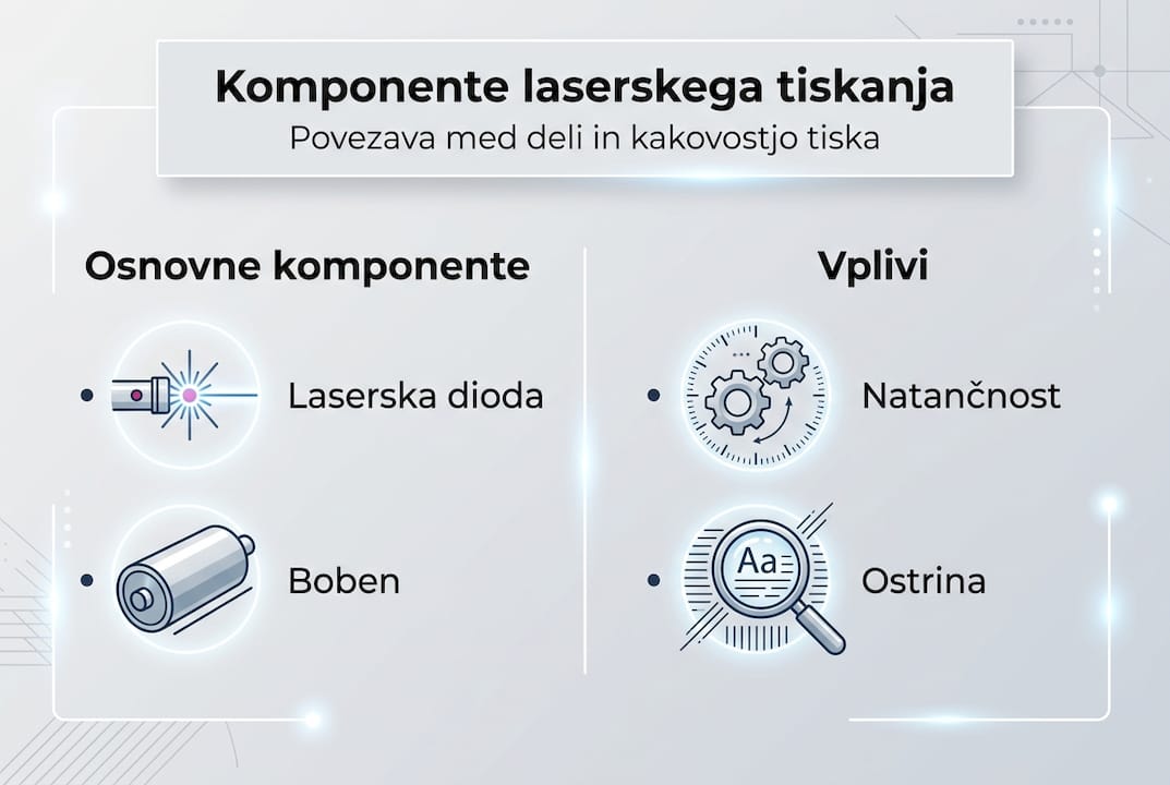 Ključne komponente laserskega tiskalnika vključujejo: