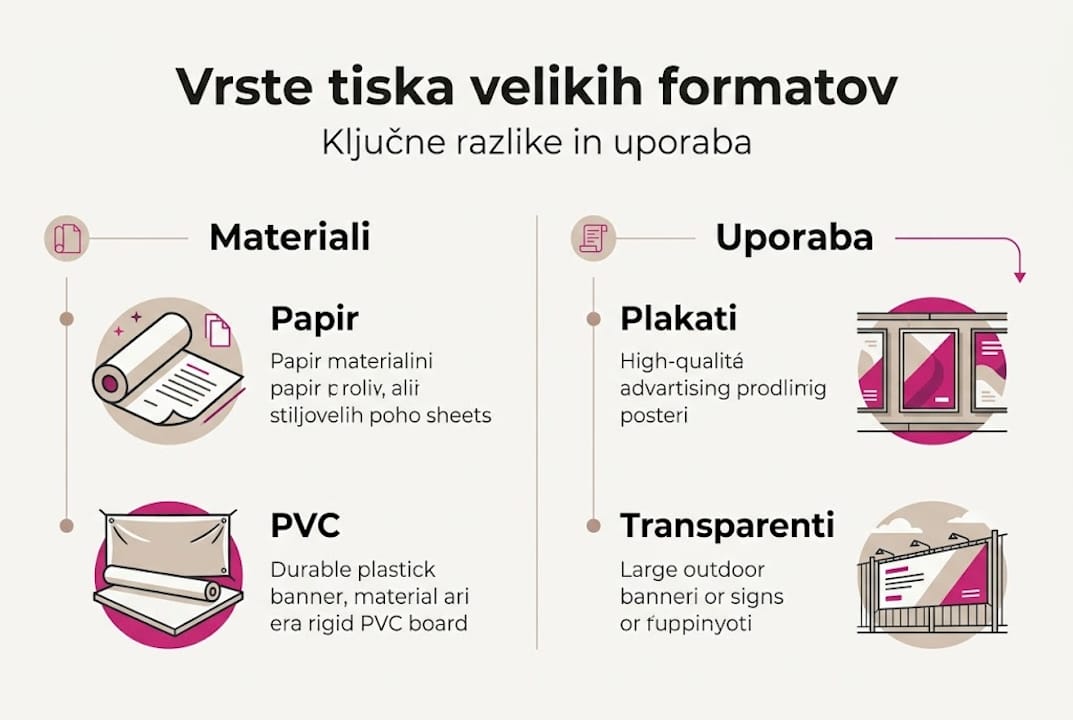 Marsikdo misli, da je tisk velikih formatov zgolj povečana različica navadnega tiskanja. V resnici je ravno obratno. Ko dimenzije narastejo, pridejo do izraza vsaka napaka v datoteki, vsak napačen barvni prostor in vsak spregledani rob. Razlika med banalnim in profesionalnim rezultatom se skriva v pripravi, izbiri materialov in razumevanju tehnologij. Ta vodnik je namenjen podjetjem, agencijam in kreativcem, ki želijo iz tiska velikih formatov izvleči največ. Spoznali boste ključne pojme, materiale, tehnologije in praktične korake, ki odločajo o uspehu projekta.